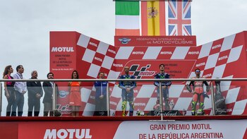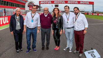 El Secretario de Turismo de la Nación, Alejandro Latra, junto a la gobernadora de Santiago del Estero, Claudia Abdala de Zamora; su par de San Juan, Sergio Uñac, el presidente de la Cámara Argentina de Turismo, Oscar Ghezzi, el subsecretario de Promoción del Ministerio de Turismo de la Nación, Fernando García Soria, el CEO de DORNA, Carmelo Ezpeleta y el subsecretario de Turismo de la provincia, Ricardo Sosa, participaron en la jornada de cierre de la competencia argentina de Moto GP en el Autódromo internacional de Termas de Río Hondo.