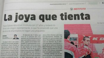 Y ahí está hoy Paulo Dybala. A sus 23 años jugará su primera final de la UEFA Champions League luego de que su equipo, la Juventus, eliminara al Barcelona de Lionel Messi en cuartos gracias a su doblete en la ida de la llave, que finalizó 3 a 0. De Laguna Larga a Turín y de allí al mundo. La Joya, el pibe que no podía creer que iba a poder jugar en Instituto.