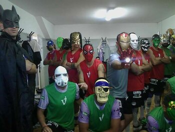 Batman, el Increíble Hulk, Darth Vader, el Capitán América, Ironman, un pirata, un alien, un vikingo y hasta el Sapo Pepe sorprendieron a todos en la cancha de Estudiantes de Caseros, donde Arsenal y Sacachispas disputan su encuentro válido por los 32avos de final de la Copa Argentina.
