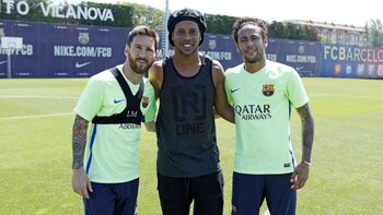 A uno de los primeros que saludó y abrazó fue al argentino, que se mostró contento por su visita. "Siempre es bueno encontrar grandes amigos, grandes jugadores. Es un placer muy grande estar con ellos", agregó el brasileño que supo ganarse un lugar grande en la historia del Barça, donde ganó dos ligas españolas, dos supercopas españolas y una Champions League.