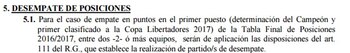 Ante una posible igualdad de puntos en el primer puesto (que también determina el primer clasificado a la Copa Libertadores de 2017), el Reglamento del Campeonato de Primera División 2016/2017, en la resolución aprobada el 18 de agosto del año pasado, resolvió que "serán de aplicación las disposiciones del art. 111 del reglamento general, que establece la realización de partido/s de desempate".