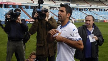 Apenas ingresó al campo de juego para ser presentado de manera oficial, el argentino comenzó a ser silbado por los aficionados. Los hinchas del Zaragoza le recordaron su accionar cuando era jugador de Las Palmas; por lo que tuvo que pedir perdón en reiteradas oportunidades.