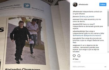 Esta mañana, el manager subió a su cuenta de Instagram una foto del jugador y aseguró que el mediocampista fichará para el elenco de Avellaneda. "Independiente contará con un gran refuerzo", escribió junto a la imagen.