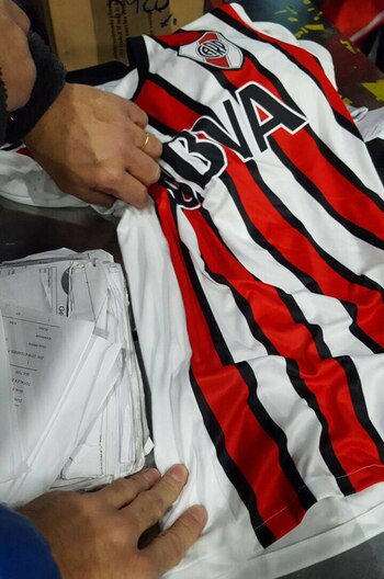 La tercera indumentaria tendría un estrecho parecido con la que utilizó el equipo de Ramón Díaz en 1999: sería a rayas verticales rojas, blancas y negras.