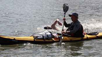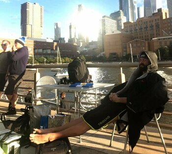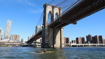 "'Allá está el último puente' me dijo Cristian, mi kayaker. Era el número 20, después de pasarlo tenía la meta. Alrededor mío sólo se encontraba la embarcación con el capitán cubano que me alentaba, Hernán que me mostraba la bandera Argentina y Sharon, la fiscalizadora que me aplaudía. Ya quedaban pocos kilómetros para llegar. No había más puentes enormes que atravesar, solo el río al lado este de la Gran Manzana", narró Ola.