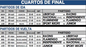 El Rojo también iniciará su serie en Asunción, pero el miércoles 25 de octubre a las 19:15 ante Nacional. Luego todo se definirá el jueves 2 de noviembre a las 19:15 en el Libertadores de América.