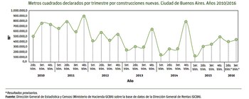 La Dirección General de Estadística y Censos del Gobierno de la Ciudad informó un importante crecimiento de los permisos de obra en el ámbito porteño en 2016. Aunque todavía no llegaron al nivel de 2011 (antes de las restricciones al dólar), en el primer trimestre de 2016 las declaraciones juradas informaron una superficie 182% mayor que en el mismo lapso de 2015, mientras que en el segundo trimestre el incremento fue de 32% respecto del mismo período del año pasado.