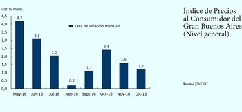 El presidente del Banco Central afirmó que "en el último semestre de 2016 la tasa promedio mensual de inflación fue de 1,4%, que equivale a un 18,5% anualizado. Es decir que hace seis meses que la economía transita en una inflación debajo del 20% anual, es lo meta que nos habíamos fijado".