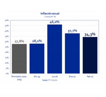 "En el primer bimestre la inflación acumuló 3,8%, lo que si bien representa una disminución frente a igual bimestre de 2016 (+8,5%, producto de la devaluación) está en línea con el promedio de los primeros bimestres desde 2011 (+3,7%)", indica el análisis.