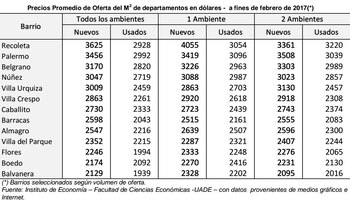 Un relevamiento realizado por la Universidad Argentina de la Empresa (UADE), concluyó que "se mantiene la tendencia alcista en el precio del metro cuadrado en el ámbito de la Ciudad de Buenos Aires tanto para las unidades nuevas como usadas".