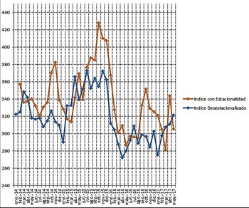 Respecto de abril pasado, los volúmenes despachados en mayo de 2017 registraron un aumento del 3,31% desestacionalizado.