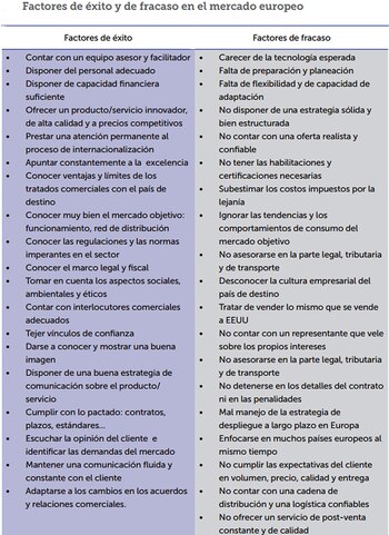En definitiva, "hacer negocios en Europa y con los europeos (…) constituye un desafío al alcance de los latinoamericanos siempre que se reúna una serie de condiciones que van desde fortalezas personales de los empresarios (osadía, perseverancia, rigor profesional) hasta un desempeño empresarial acorde con las expectativas y exigencias del mercado".