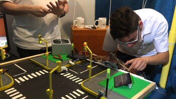 Henry y Damián, apostados detrás del stand, controlan desde su celular los pequeños dispositivos hechos con materiales de reciclaje. Antes había desinterés. Ahora, los alumnos de 1º a 6º están involucrados en el proyecto. Incluso ya tienen una cancha en la que dos equipos de cinco pueden jugar un partido. Es solo uno de los 1.000 proyectos que fueron seleccionados, que pasaron instancias en sus respectivas provincias, para participar en la feria.