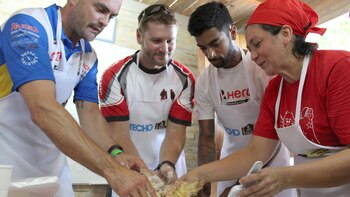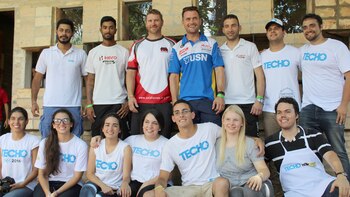 Los pilotos David Thomas, Mattiew Hart, Santosh y Joaquim Rodrigues recibieron una dosis especial de motivación e inspiración al participar en un taller dictado por las pobladoras del asentamiento informal Cerro Corá, en Luque, Asunción.