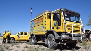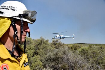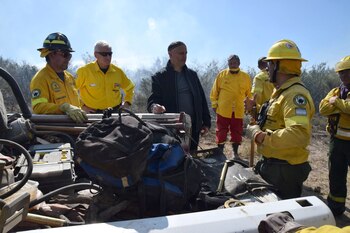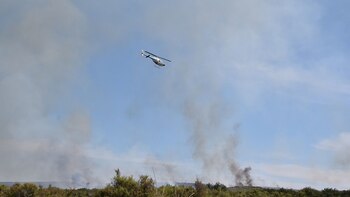 En la zona se está trabajando con helicópteros y aviones hidrantes, más soporte terrestre con autobombas 4 x 4, vehículos más livianos que los tradicionales para que puedan entrar y salir de terrenos a campo abierto.