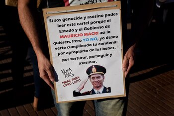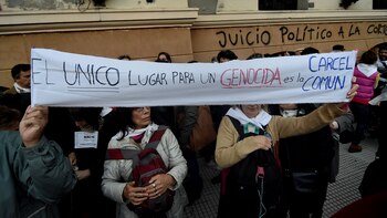 "No perdonamos, no nos reconciliamos. Cárcel común y perpetua a los genocidas", exigió.