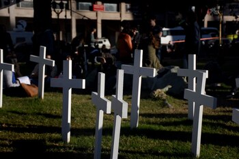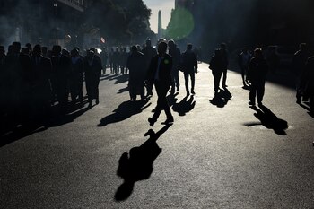 Muchos de los manifestantes tenían pañuelos blancos atados al cuello y la cabeza.