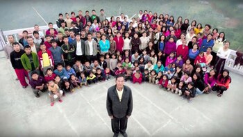 39 esposas, 94 hijos y 33 nietos forman la familia más grande del mundo, Ziona, de 67 años, piensa seguir ampliándola, tal y como dictamina su religión.