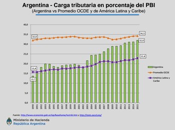 Al momento de la descripción respecto de dónde está parada la Argentina en relación al resto del mundo, surgen conclusiones alarmantes. La carga fiscal del país se ubica en el 32% del PBI, superando en un 40% el nivel promedio de América Latina y el Caribe (que se ubica en 22,8%). Y al mismo tiempo es un nivel parecido al de los países más desarrollados del mundo que integran la OCDE (34,3%). Queda confirmado con evidencia científica un dicho popular: en la Argentina se pagan tantos impuestos como en Europa, pero para recibir servicios del tercer mundo.
