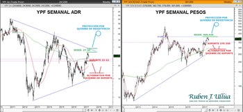 Justamente ha sido hacia el comienzo de año que desde esta misma columna, en la nota que dimos en llamar "YPF, la estrella de la Bolsa argentina para el 2017", advertíamos que esta acción presentaba un cuadro técnico prometedor para el presente año y en momentos en que el precio del ADR se encontraba en instancias de 19-20 dólares, proyectábamos una escalada alcista en la cotización que acceda hacia instancias de 27-31 dólares, en tanto que para la acción que opera en el mercado local sugeríamos objetivos de 370-410 pesos por acción.