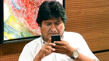 "¿Cuál era el botón que tenía que apretar para hacer una conferencia entre tres?", parece preguntarse Evo Morales, quien se impacienta por participar de la charla con Maduro y Cristina para tomar medidas en conjunto por el avance fascista de Macri.