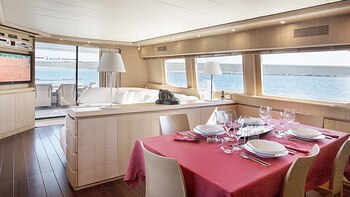 El mismo se llama Seven C, es propiedad de Easy Boats y tiene un costo de 7.300 euros por día. La embarcación, que es de unos 28 metros, cuenta con cuatro camarotes (dos individuales y dos dobles) y posee una capacidad de 10 pasajeros. Además, dentro de los extras que ofrece el servicio, aparecen un jet-ski, dos canoas, una tabla de surf y equipo de buceo.