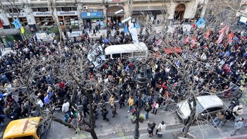 Sin embargo, las personas que custodiaban la puerta del edificio de Yrigoyen al 1500 se enfrentaron con la policía y lograron que Bonafini saliera del edificio a bordo de una combi, que no dudó en recorrer varios metros por la vereda.