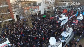 En un breve discurso, agregó: "La movilización es parte de nuestra decisión inclaudicable de que no sigan avanzando sobre nosotros, ya bastante hicieron en siete meses, así que (Mauricio) Macri, pará la mano".
