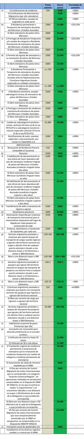 Después de más de siete años con las tarifas congeladas, el gobierno nacional dispuso aumentar entre 200% y 6.000% el precio que los ciudadanos extranjeros pagan por realizar sus trámites migratorios en el país.