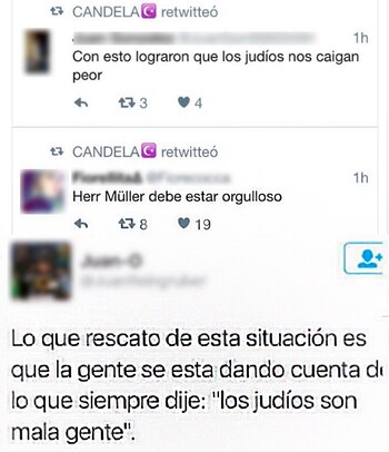 En cambio, otro usuario sí borró su cuenta luego de escribir "odio cuando los judíos se victimizan, hijos de puta" y celebrar con burlas y risas otros mensajes antisemitas.