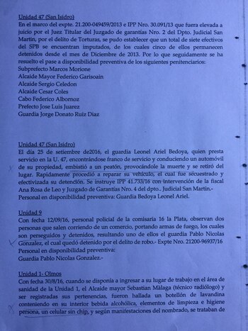 Una investigación oficial del gobierno bonaerense reveló diferentes clases de delitos -protagonizados por agentes del Servicio Penitenciario- en 45 de los 55 penales de la Provincia: venta de droga, robos a detenidos y familiares, desvío del dinero destinado a los alimentos y el combustible, portación ilegal de armas, secuestros extorsivos y hasta abusos sexuales.