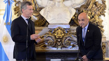 En un acto inusual, rodeado de gran parte del gabinete, de familiares y amigos, Arribas juró esta tarde oficialmente como "señor 5"; la breve ceremonia confirmó la estrechísima relación que une a Macri con el ex representante de jugadores.