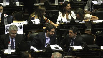 Mientras se llevaba cabo la sesión, referentes de las las bancadas opositoras, entre ellas el Frente para la Victoria, el Frente Renovador, las distintas expresiones del peronismo y el socialismo, brindaron una conferencia de prensa para anunciar el acuerdo y asegurar que tienen los votos necesarios para aprobar la iniciativa.