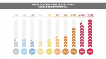 En tanto, desde el ministerio de Hacienda revelaron a Infobae que entre 2007 y 2015, la planta de empleados de Santa Cruz creció de 22.912 a 35.256. Además, el Gobierno provincial aumentó su deuda con la Nación de $200 millones en 2007 a $7.930 millones en 2016.