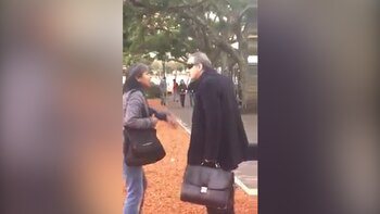 Toda la secuencia fue grabada esta mañana, cerca de las 8, por una joven que paseaba a su perro, quien de inmediato subió el acalorado cruce a las redes sociales a través de la cuenta de twitter @TomasVdelaTorre.