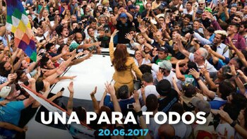 La convocatoria se lanzó bajo el lema "Una para Todos", y el acto se promocionó con la leyenda "este 20 de junio nos convoca la bandera". A través de las redes sociales se presentó a Unidad Ciudadana como el espacio "para volver a tener futuro". "Lo único que tenés que traer es una bandera argentina hecha por vos. No importa que sea de papel o de paño, lo que vale es que la hagas por vos", fue la consigna de Kirchner, que hoy alimentará la ansiedad de los opositores (y oficialistas) que la quieren ver como candidata en las próximas elecciones legislativas.
