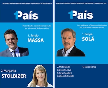 Último en anunciar sus listas fue el diputado Sergio Massa, quien encabezará la lista de 1País para el Senado, acompañado por la diputada Margarita Stolbizer. En Diputados, competirán la diputada Mirta Tundis, el ex ministro de Desarrollo Social provincial Daniel Arroyo, el legislador bonaerense Jorge Sarghini, la diputada nacional Liliana Schwindt y el legislador provincial del GEN Marcelo "El Oso" Díaz.