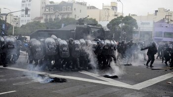 En el operativo sobre la 9 de Julio actuó la División Operaciones Urbanas de Contención y Actividades Deportivas (DOUCAD) de la Policía de la Ciudad contra los manifestantes encapuchados, pero el despeje de la calle bien podría haber estado a cargo de la Policía Federal que responde a Bullrich. Ya no hay diferencias.