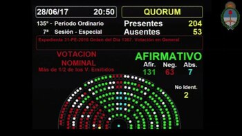 En una sesión especial pedida por el frente oficialista Cambiemos, la propuesta fue aprobada por 131 positivos, 63 negativos y 7 abstenciones.