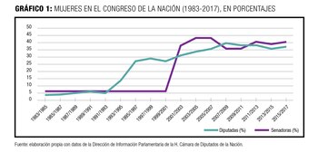 Después de 25 años de la aplicación de cuotas en las elecciones nacionales, las cámaras del Congreso no han alcanzado una composición paritaria. Así, Argentina descendió posiciones en el ranking internacional de mujeres en el Parlamento de la Unión Interparlamentaria, ubicándose detrás de países como Bolivia, Ecuador o México, que han avanzado en el establecimiento de la paridad política de género.