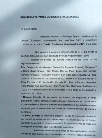 El kirchnerismo detectó faltante de boletas en San Martín, Moreno, Mar del Plata, San Isidro, Luján, Morón, Tigre, San Vicente, Hurlingham, Marcos Paz, Navarro y General Rodríguez.