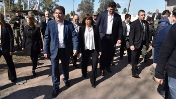 El ministro Seguridad de la provincia de Buenos Aires, Cristian Ritondo, su par de Nación, Patricia Bullrich, y el secretario de Seguridad nacional Eugenio Burzaco, coordinaron el procedimiento policial que permitió derribar tres búnkeres narcos que operaban en la villa Puerta de Hierro, partido de La Matanza.