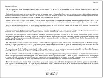 También señala que el sector con el cual se lo relaciona entregó al Secretario de Políticas Públicas documentación que avalaría la convicción que reina en el sector sobre lo erróneo de las cifras tomadas por Defensa de la Competencia para proceder al cálculo del reajuste tarifario que se le quiere imponer a la actividad del practicaje.