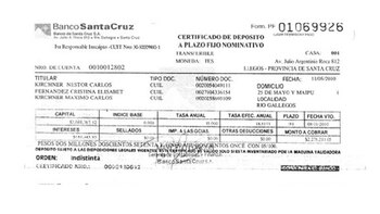 Luego de la entrevista que le realizó Luis Novaresio a la ex presidente Cristina Kirchner en Infobae, durante la cual la ex mandataria afirmó que "la evolución del patrimonio fue juzgada judicialmente, evaluado por peritos de la Corte Suprema, no por cualquiera, y fuimos sobreseídos", un informe de La Cornisa aseguró que CFK no declaró un total de 22 plazos fijos por un equivalente a más de USD 5 millones al cambio oficial de la época.