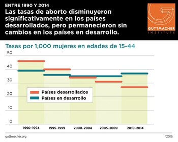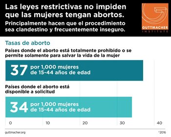 El número de abortos cada 1.000 mujeres es similar (entre 34 a 37) en los países donde el aborto está absolutamente prohibido que en aquellos en donde las leyes permiten abortar.