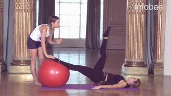 – Acostarse boca arriba con los pies sobre la pelota y elevar la pelvis vértebra por vértebra. 10 repeticiones.