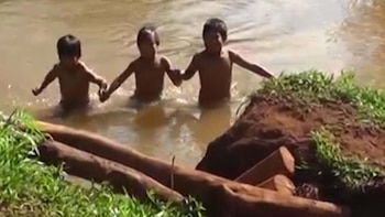 Y como no hay puente, cada día, de lunes a viernes, los 45 alumnos… ¡cruzan el arroyo a nado!