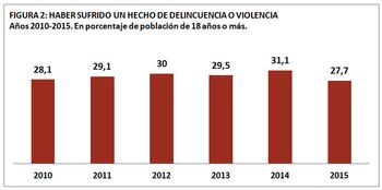 La investigación, que estuvo a cargo de Marcela Muratori y Solange Rodríguez Espínola, también reveló que 2015 fue el año analizado en el que menos hechos de inseguridad se registraron, ya que el 27,7% dijo haber sufrido un hecho de delincuencia o violencia, por debajo del 31,1% de 2014, el año con peores cifras desde 2010.
