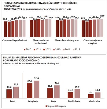 Para los autores del estudio este indicador es importante porque el malestar por sentirse inseguro es tanto o más perjudicial para la salud de las personas que haber sido víctima de un delito. "Muchos estudios se han centrado en las consecuencias de la victimización sobre el bienestar de las personas, evidenciando que el haber sido víctima, tanto directa como indirecta, tiene importantes implicancias en la salud, dado que en ambos casos disminuye la percepción de calidad de vida, satisfacción y felicidad", sostiene el informe.