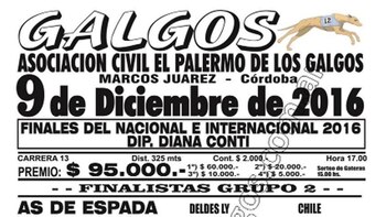 Por otro lado, este viernes se llevó adelante la segunda jornada de la carrera "Diana Conti", en la ciudad de Marcos Juárez, Córdoba, organizada por la Asociación Civil El Palermo de los Galgos de esa provincia.